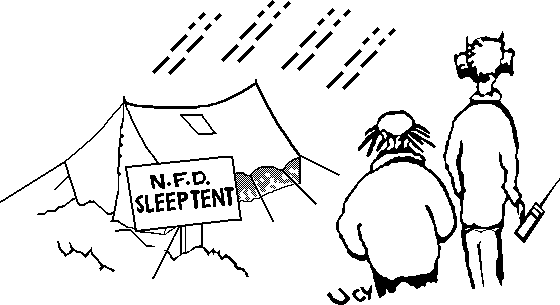 This picture also appeared in the Fist magazine, Keynote. For the preservation of morse code. The Dots and dashes above the tent is the letter 'z'. In the final publication, ZZzzzz were substituted for the morse. We wonder who Fred is and if he really snores in morse.